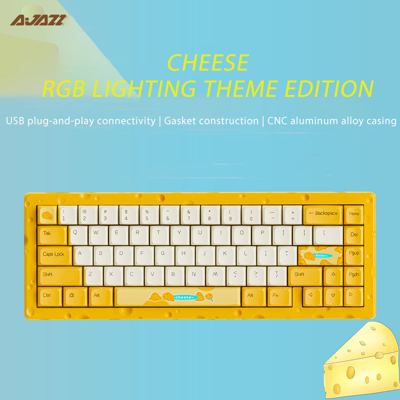 AJAZZ AC067 Wired Mechanical Keyboard Full aluminum CNC-machined case Cheese-themed colorway Fully hot-swappable for all keys