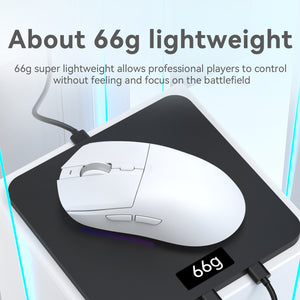 - 【Lightweight & Ergonomic Design】 The AJAZZ AJ139 V2 MC gaming mouse boasts a weight of just 66 grams, making it a lightweight option that minimizes wrist strain during long gaming periods. Its solid body ensures a comfortable and smooth grip, facilitating precise movements. This mouse is perfect for gamers seeking a balance of comfort and adaptability without sacrificing sturdiness, allowing for seamless gameplay with a secure fit for your hand.