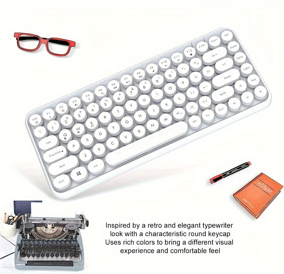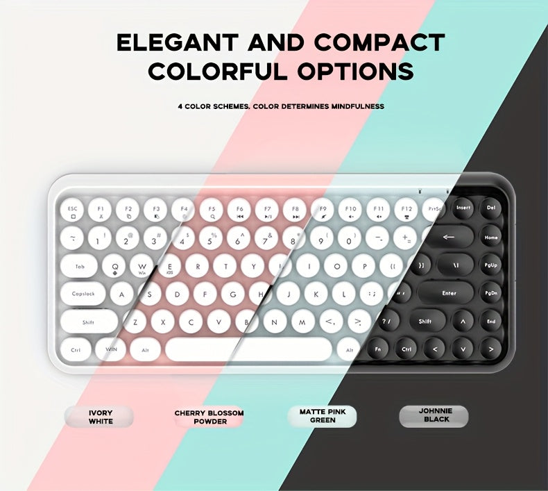 Ajazz 308I 84-key membrane keyboard with round keycaps and Bluetooth connectivity