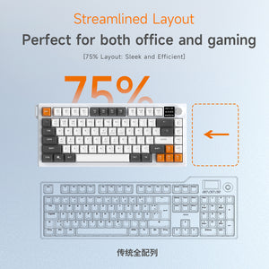 AJAZZ AF82 Gaming keyboard Series Quiet Bluetooth/2.4G Wireless/Wired 75% Layout Multimedia Knob Enjoy Dual Enjoyment for Office and Entertainment