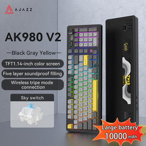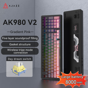 AJAZZ AK980 V2 Gaming Mechanical Keyboard 5000mAh/10000mAh Hot swappable Bluetooth/2.4G Wireless /Wired