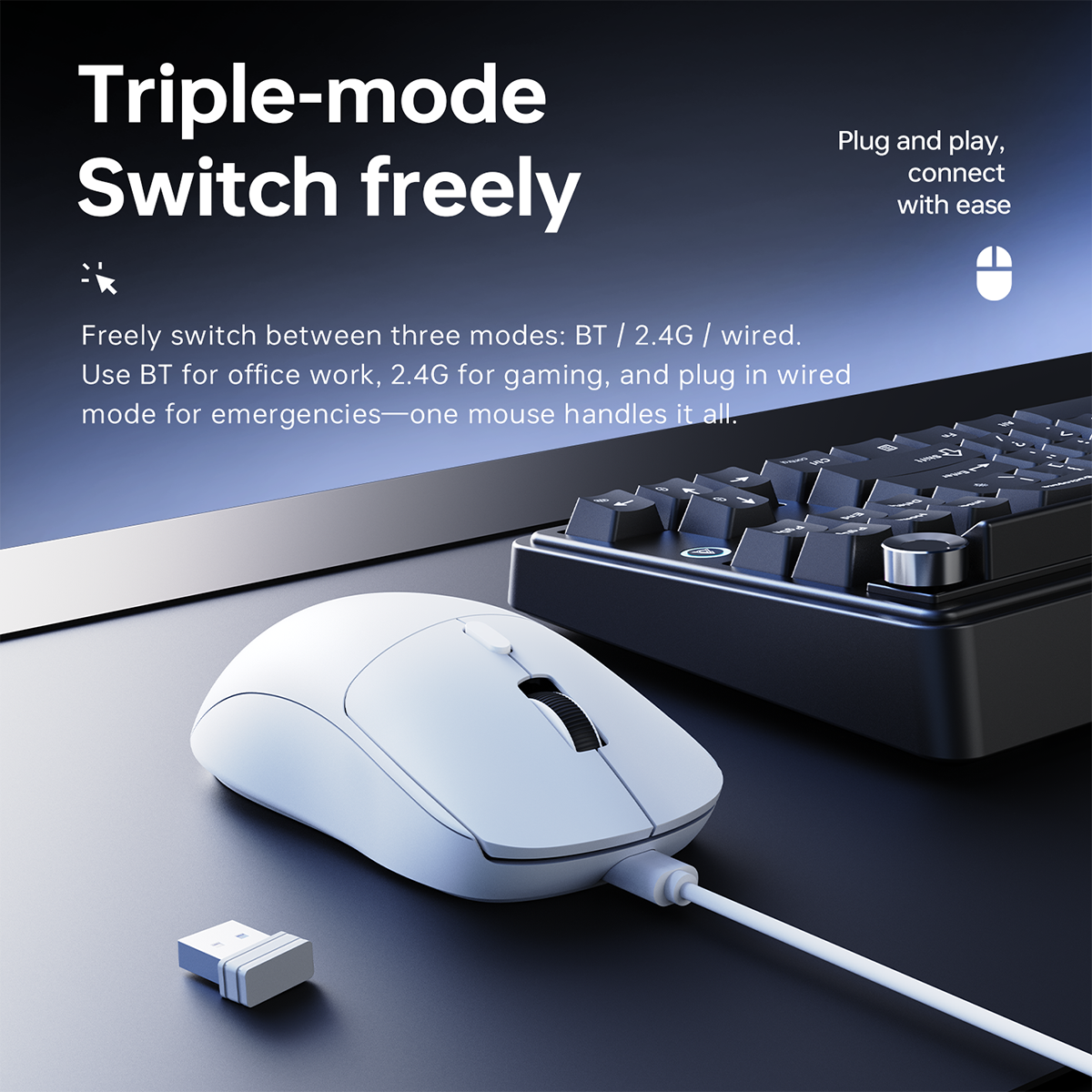 AJAZZ NJ07 Wired/2.4G Wireless/Bluetooth Gaming Mouse 300mAh Battery Lightweight 67g 1000Hz Rebound Rate